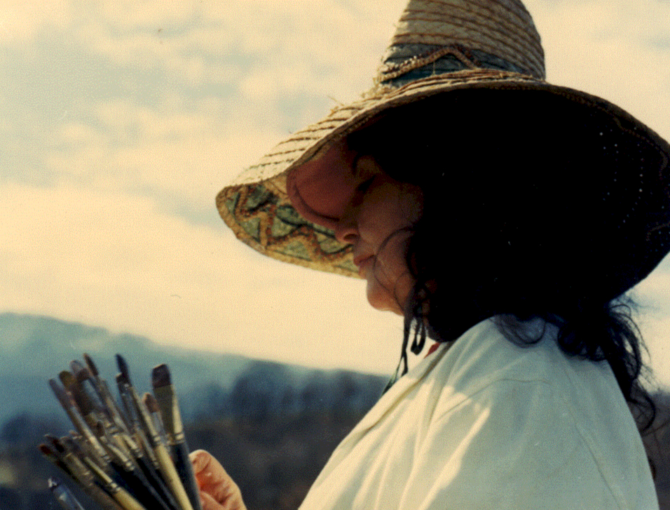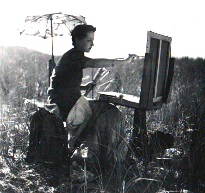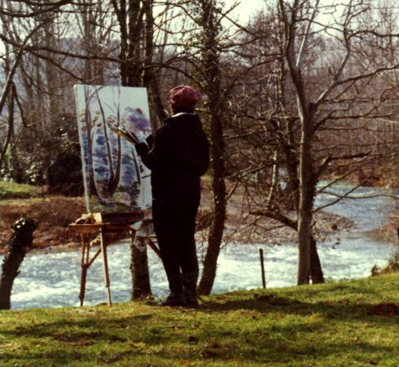 Louise Cazenavette en train de peindre en pleine nature